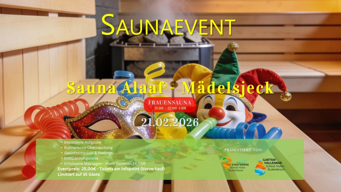 An Eventtagen( Saunaevent) öffnet die Sauna nur zum Event mit Eventticket.